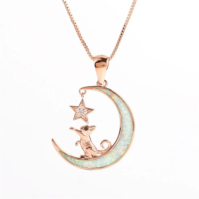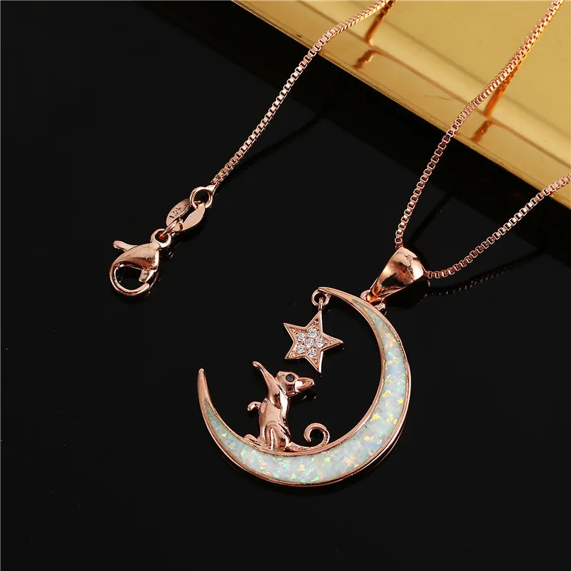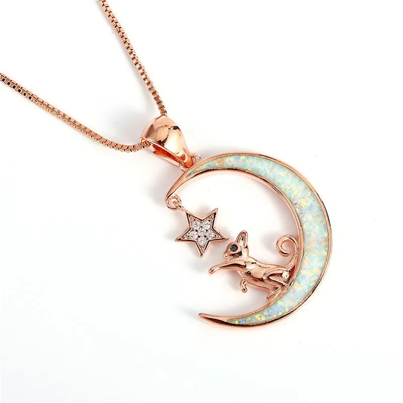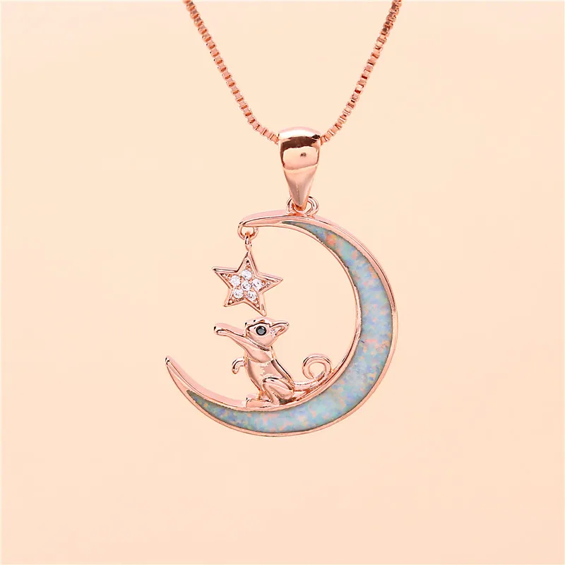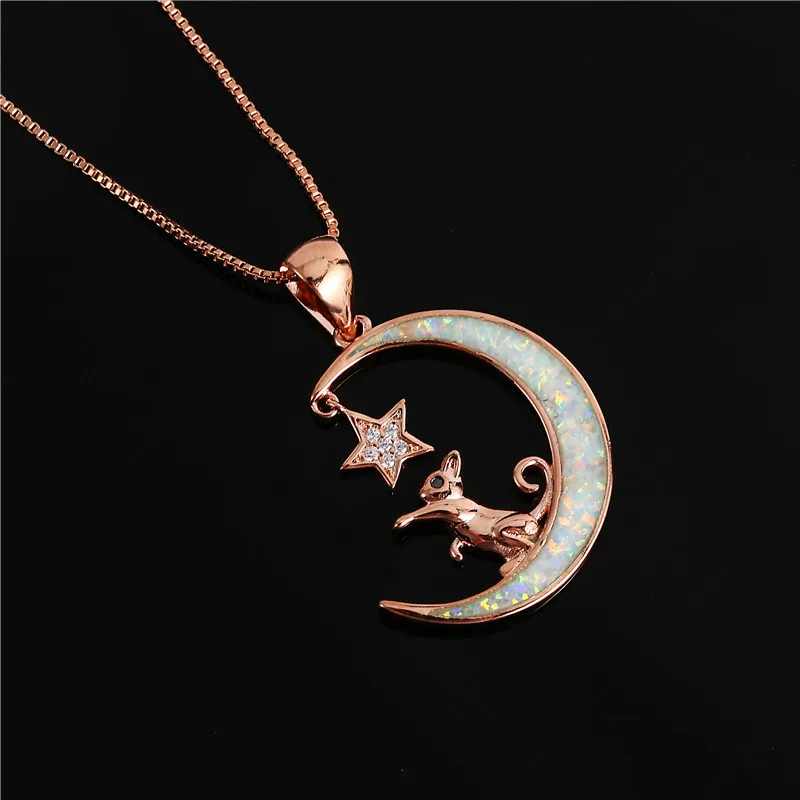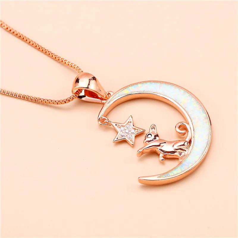 Collana con ciondolo gatto luna femminile carino collane con catena Color argento oro rosa collane Vintage in pietra opale bianca per le donne