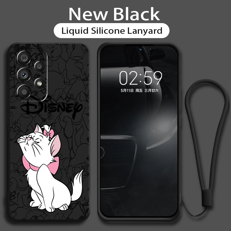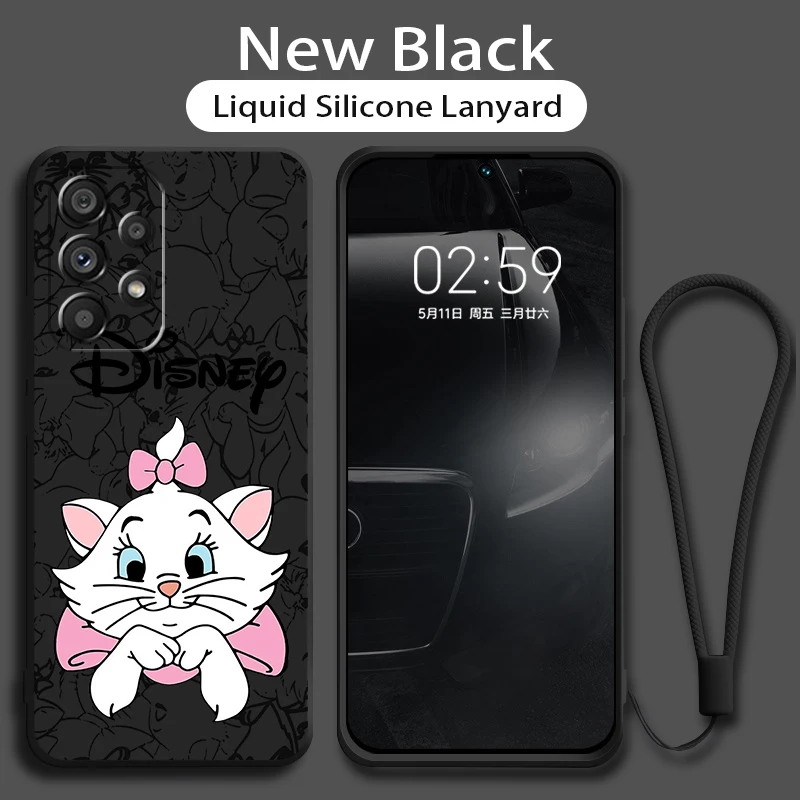 Disney Marie Cat per Samsung A53 A52 A54 A13 A51 A12 A32 A71 A33 A73 A72 A14 A23 5G custodia per telefono con corda liquida