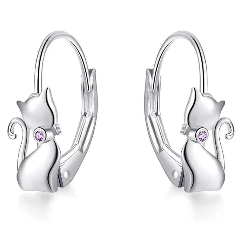 Tigrade Real 925 orecchini a bottone in argento Sterling per le donne blu/viola/bianco zircone simpatico gatto orecchino a cerchio gioielli di moda animale