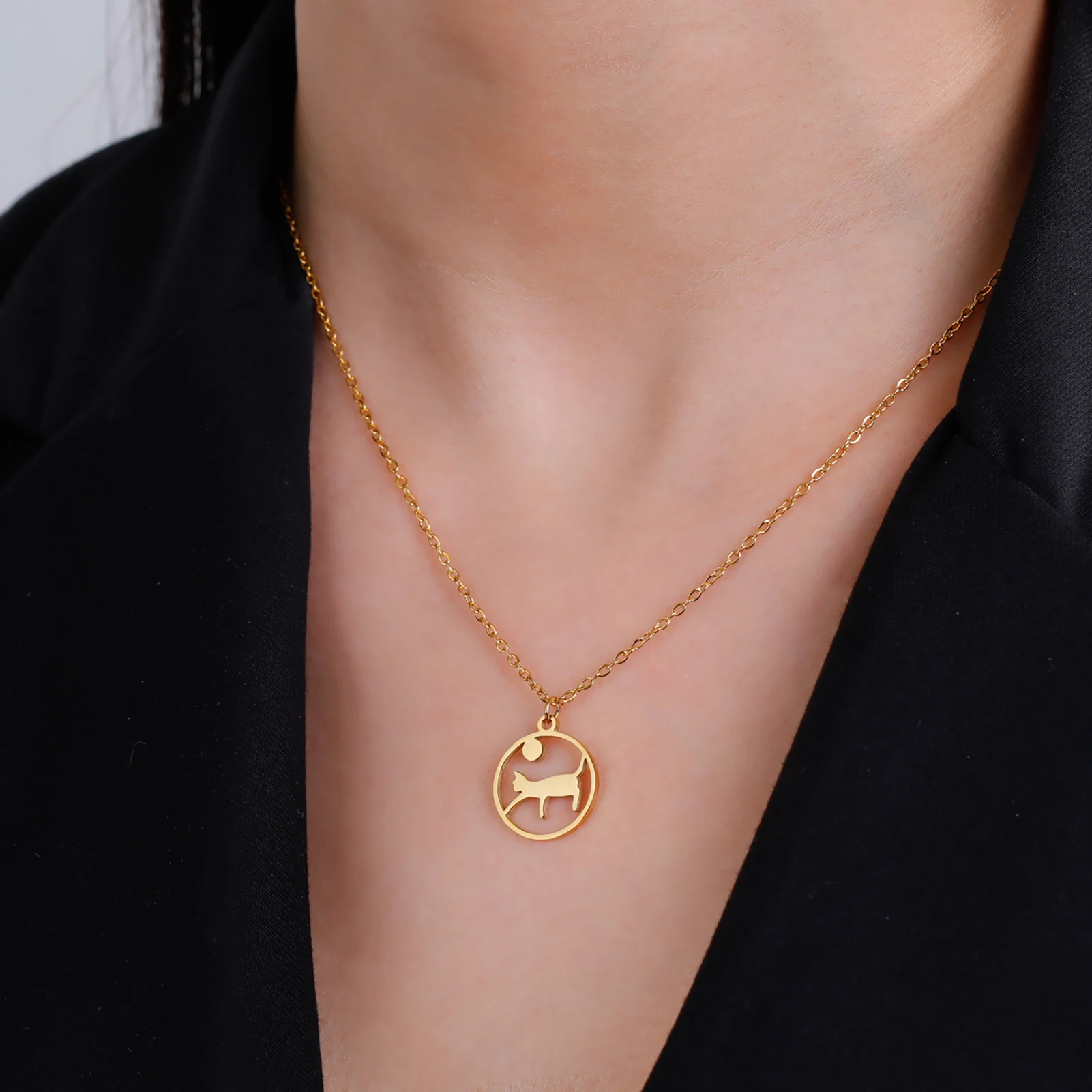 Unift Collana con gatto seduto a piedi collana da donna in acciaio inossidabile gioielli di moda carini regalo per gli amanti del gattino dell’animale domestico di stato diverso